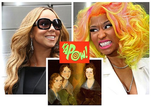 P!nk and Emily Bronte portraits alongside a black and white of Timothy Dalton as Heathcliff in the Wuthering Heights film adaptation